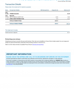 Australia ANZ Progress Saver Bank Account Statement Template in Word & PDF