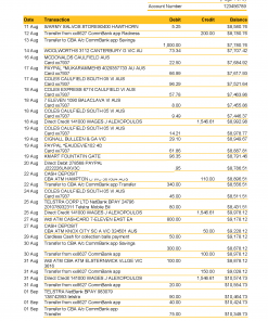 Australia Commonwealth Bank Account Statement Template in Word & PDF