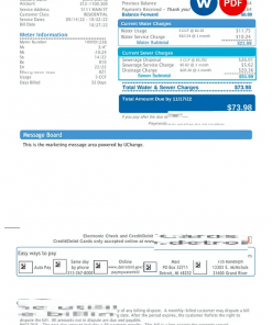 Completely editable USA Michigan Water and Sewerage Department utility bill, .doc and .pdf template is of high quality.